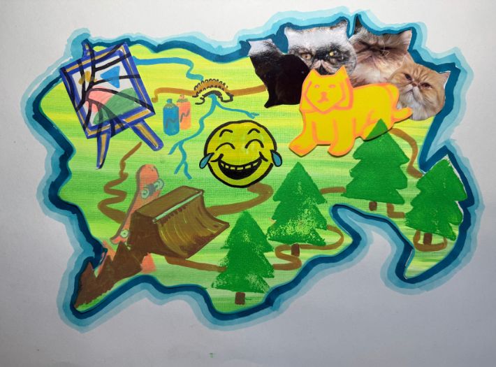 - are there mountains, forests, lakes, volcanoes, beaches, etc.? - Using your choice of words, colours, symbols and patterns, add everything that gives you a sense of belonging to your map.